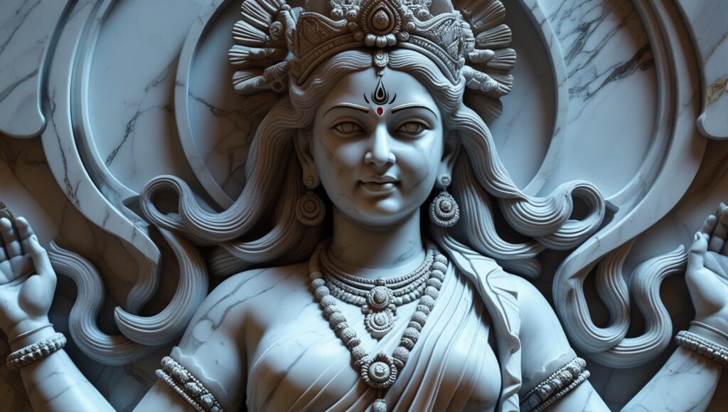 AN ANCIENT AND ELEGANT MARBLE GANESH STATUE, EXQUISITELY CARVED WITH DETAILS.